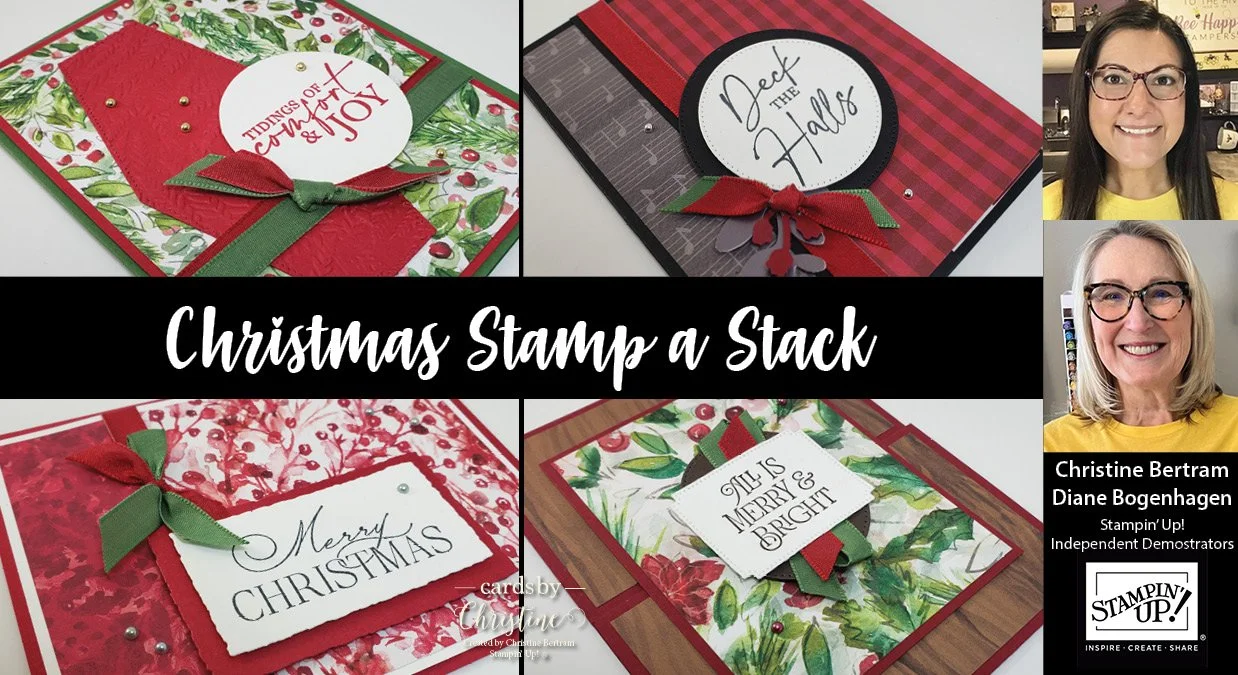 **FREE to watch, but the Porch Pick Up cost is $55 OR if Mailed $68 with ‘cash’/check option with payment to Christine. The stamp sets that will be used are Christmas Classics and Brightest Glow. If you don’t have the stamp sets or dies, you could add them to an online order using my current host code found on my website and you could get a different class that is available for free with a minimum purchase. I can always help you enter the order if you need help, just ask. You will need stamps, inks, and adhesives to complete the cards.