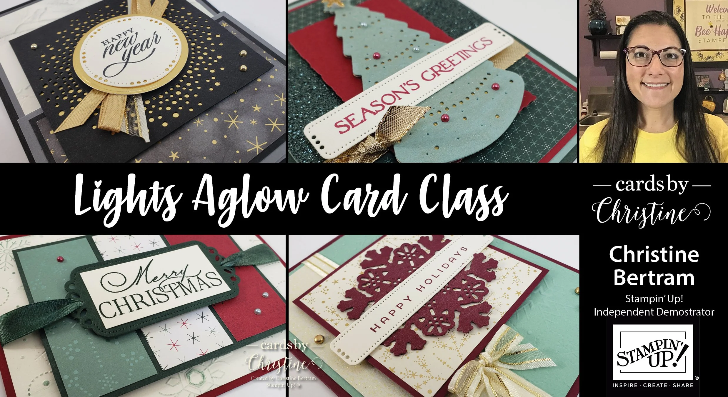 ***Lights Aglow Suite can be found in the Stampin’ Up! Holiday Catalog on pages 30-33. Order the Christmas Lights or Brightest Glow Bundle by 11/4 ($45.75 or $52 + S&T) and attend any of the 3 classes for FREE plus receive a half pack of the Festive Foils DSP (cut down to either 6”x6” if mailed) (value $5) for FREE. The Bundle/Suite cannot be purchased as part of another class’ fee to receive the class and gift for FREE. Contact Christine after placing the order so it can be documented to send the gift with the kits or given at class. Must use the current host code found at cardsbychrisb.com to qualify.
