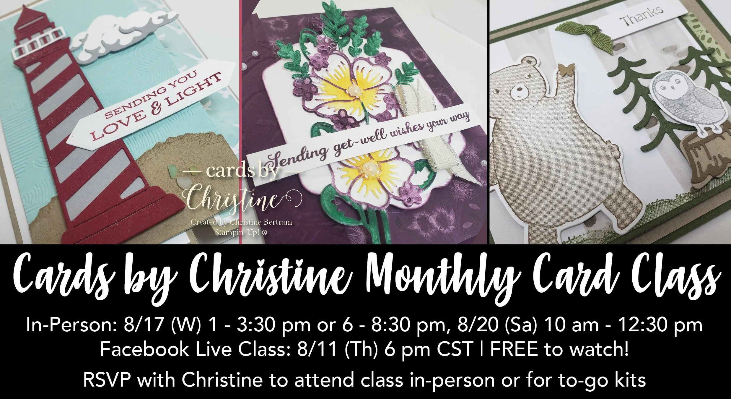 Can’t make either day / time? No worries, the replay of the online class will be housed in the videos section on the Cards by Christine Page in Facebook and on my YouTube Channel indefinitely.