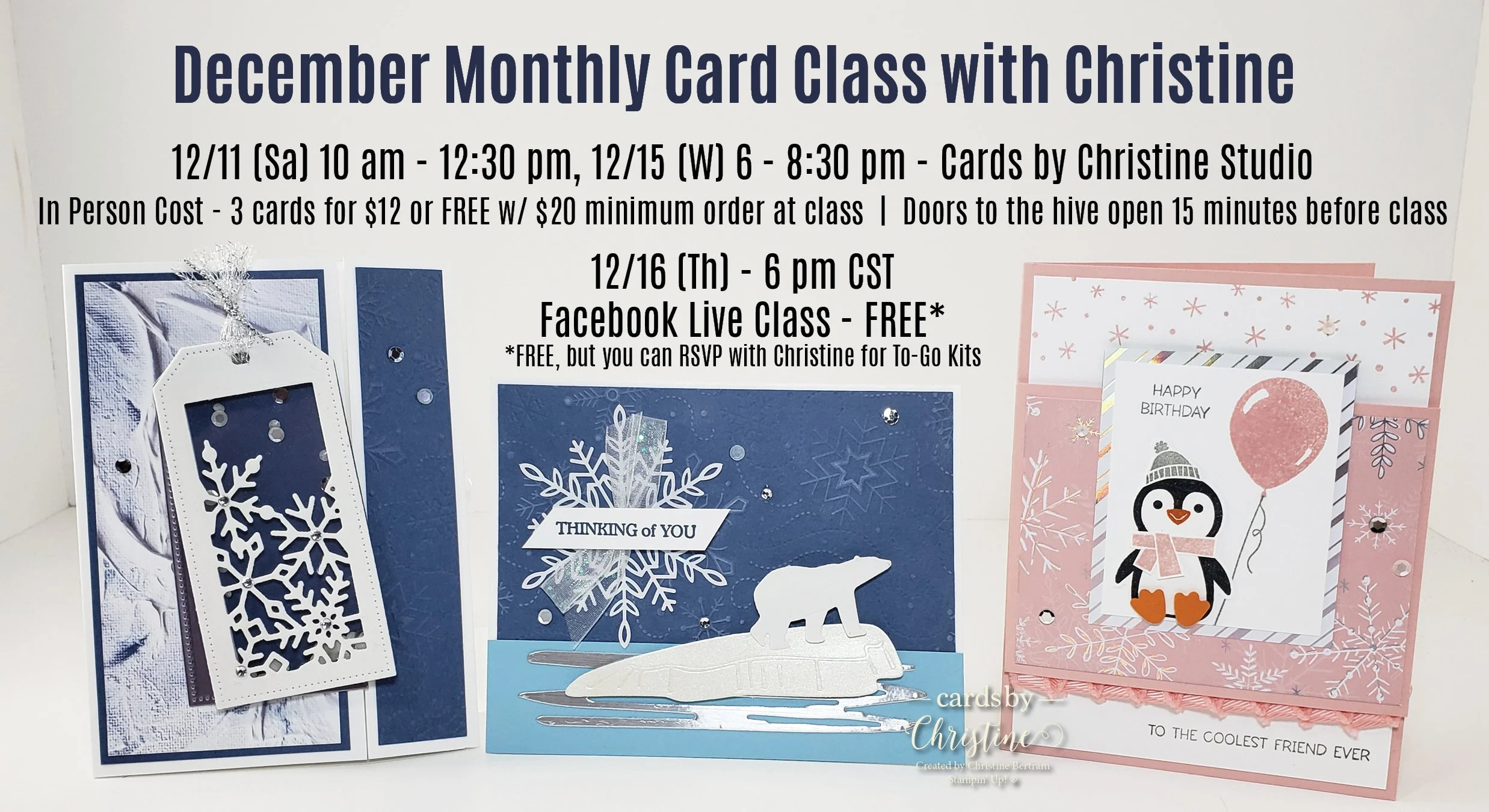 Can’t make either day / time? No worries, the replay of the online class will be housed in the videos section on the Cards by Christine Page in Facebook and on my YouTube Channel indefinitely.