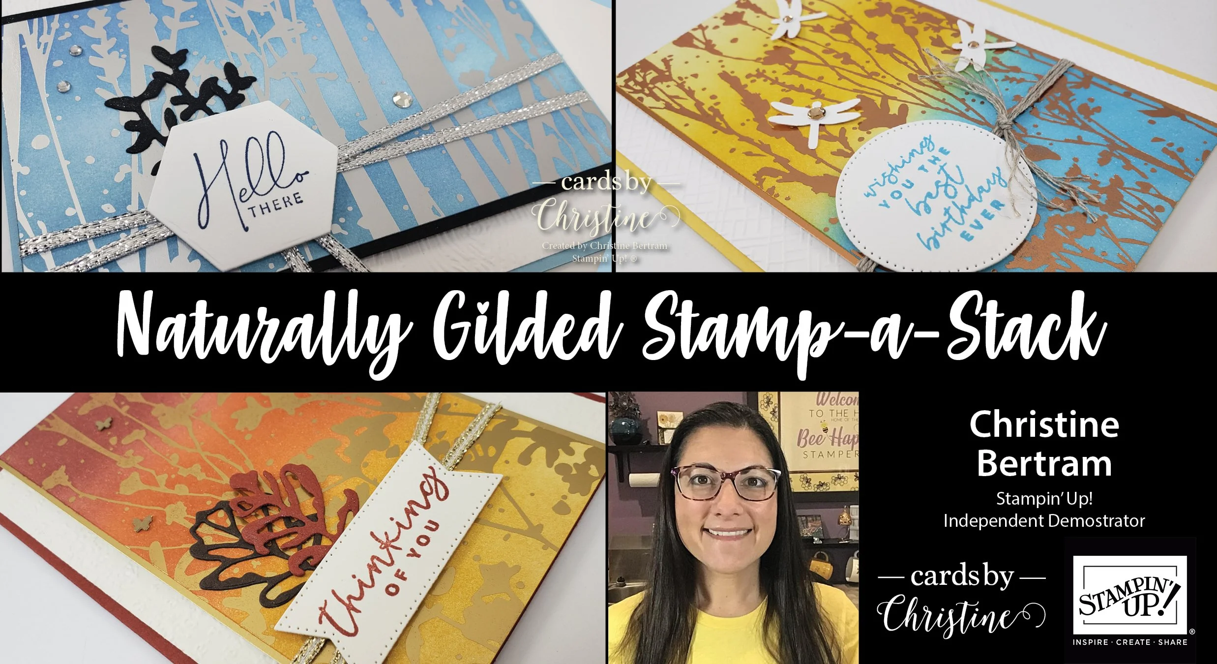 Join me in person or online and you’ll make 12 awesome and beautiful cards. This is a technique product-based class and those who register with payment will receive the card kits plus the following – 1/2 pack of Naturally Gilded DSP, Silver & Gold Ribbon, Linen Thread, 3 Small Blending Brushes, 12 Envelopes and coordinating embellishments for each card. You will keep whatever is left over and there will be plenty left to make lots more cards by adding your own card bases, mats, labels, etc.