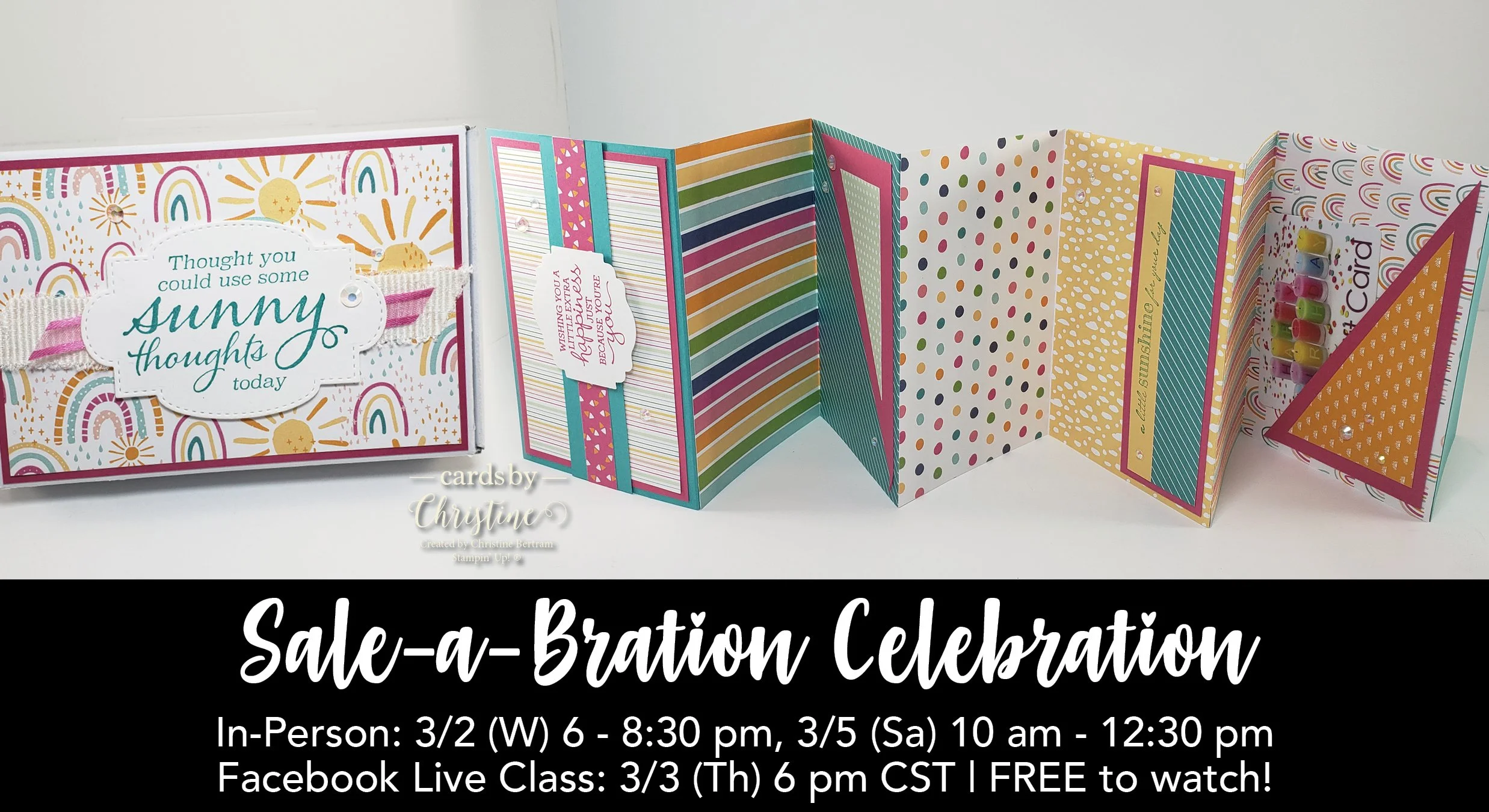 The next Sale-A-Bration Celebrations are set for the first part of March. They are FREE events for my amazing customers and team! Join in the fun for stamping, socializing, snacking, and refreshments.