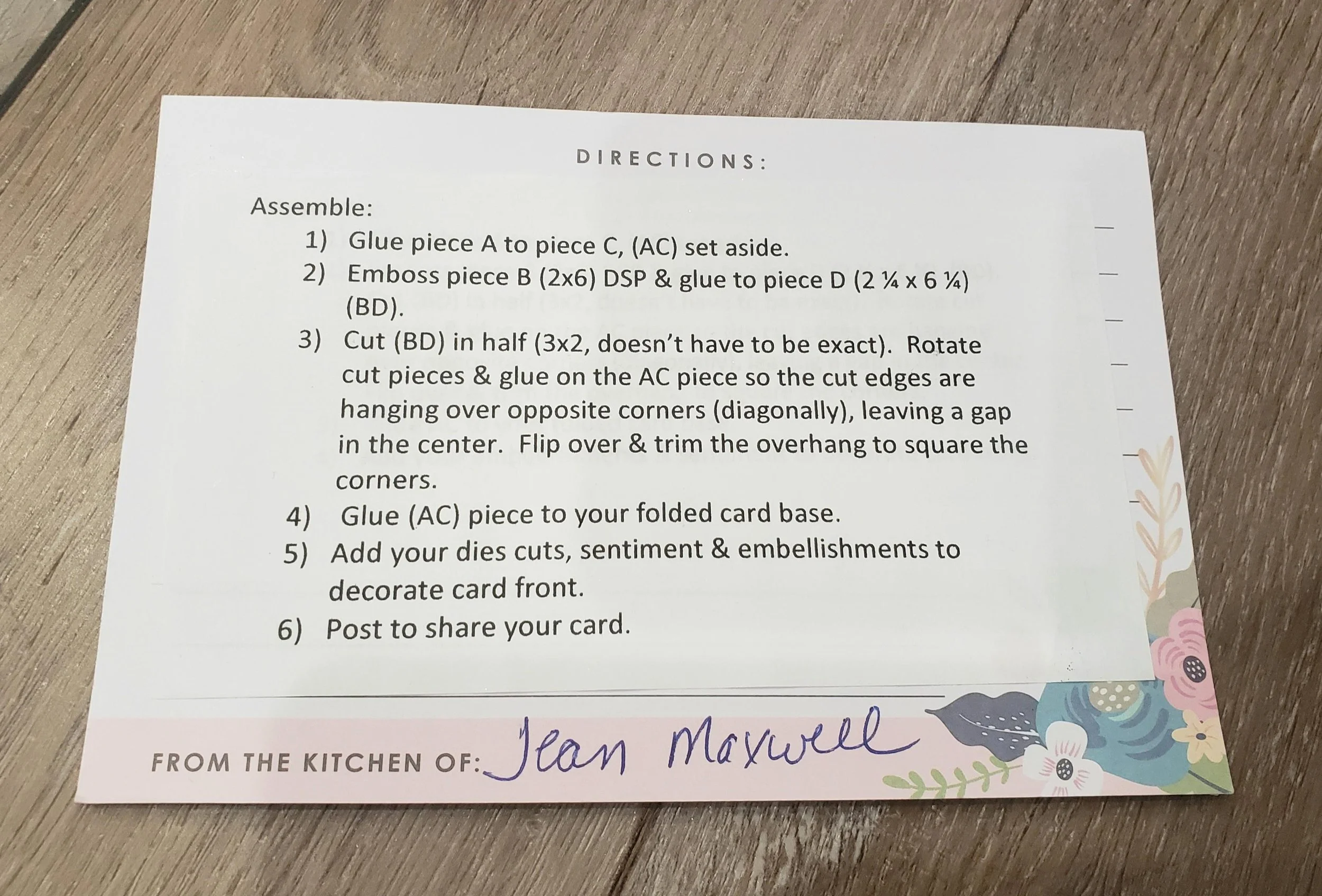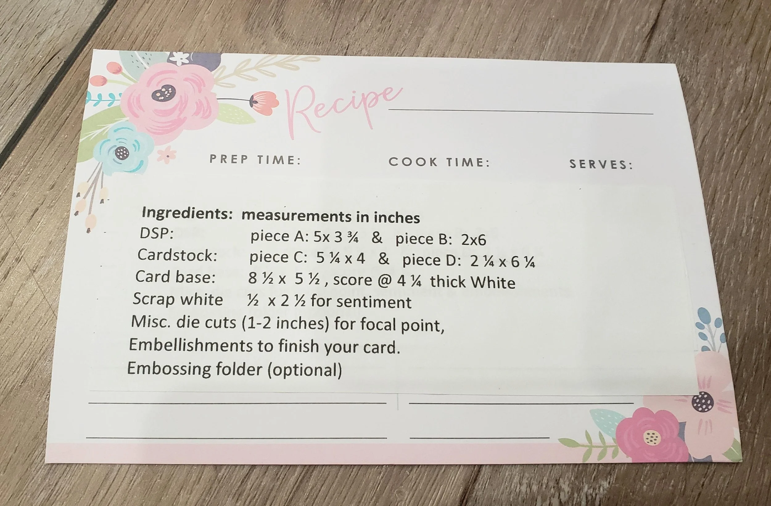 Let’s make a card together! But there’s a catch because I need your help in creating a card that will inspire others. That’s where you come in. I have a bunch of recipe cards that came with a recipe book and as much as I love to cook and bake, I’ll never use the recipe cards for that. I want to use them for card recipes instead. A picture of what the recipe card looks like is shown below. Those that would like to submit a recipe and sample card can fill out a form to make that request - click HERE to be taken to the form.